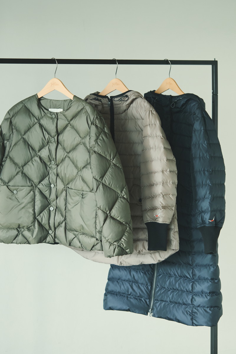 例年好評いただいているJANTZENのダウンアウター。新色や新型も加わり、今季ならではのラインナップで登場します。アイテムの要となる“羽毛(ダウン)”には、生産当初よりこだわっていて、今年も「河田フェザー」の高品質なリサイクル羽毛「グリーンダウン」のみを使用しています。